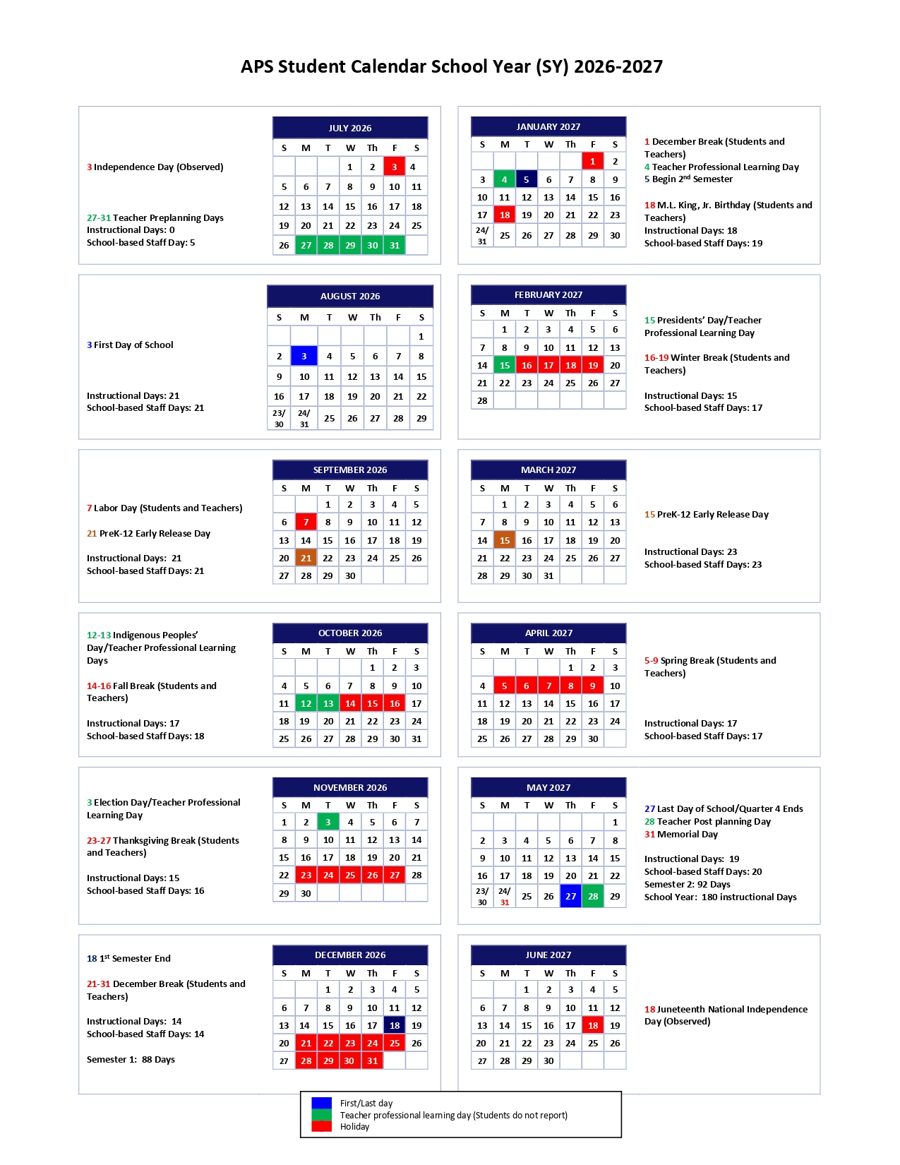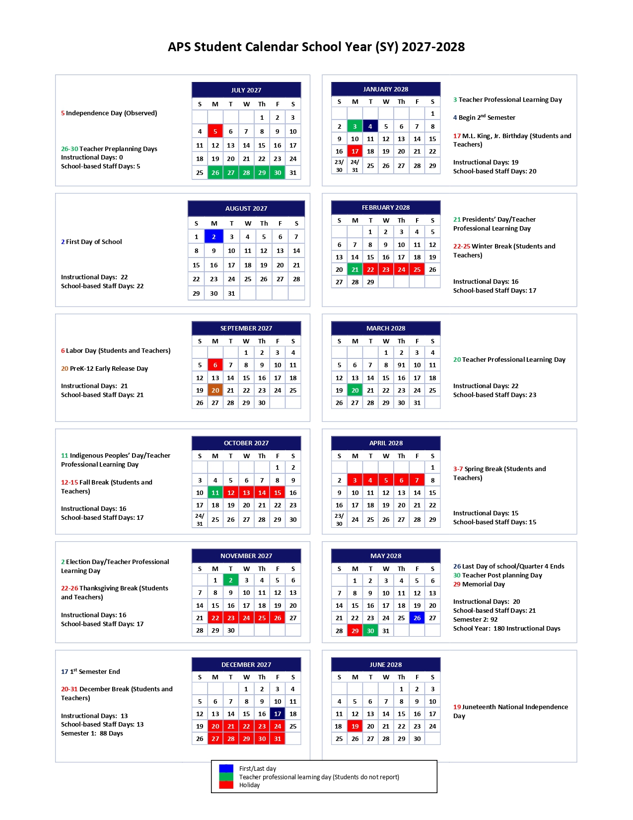 Atlanta Public Schools Calendar 2027-2028