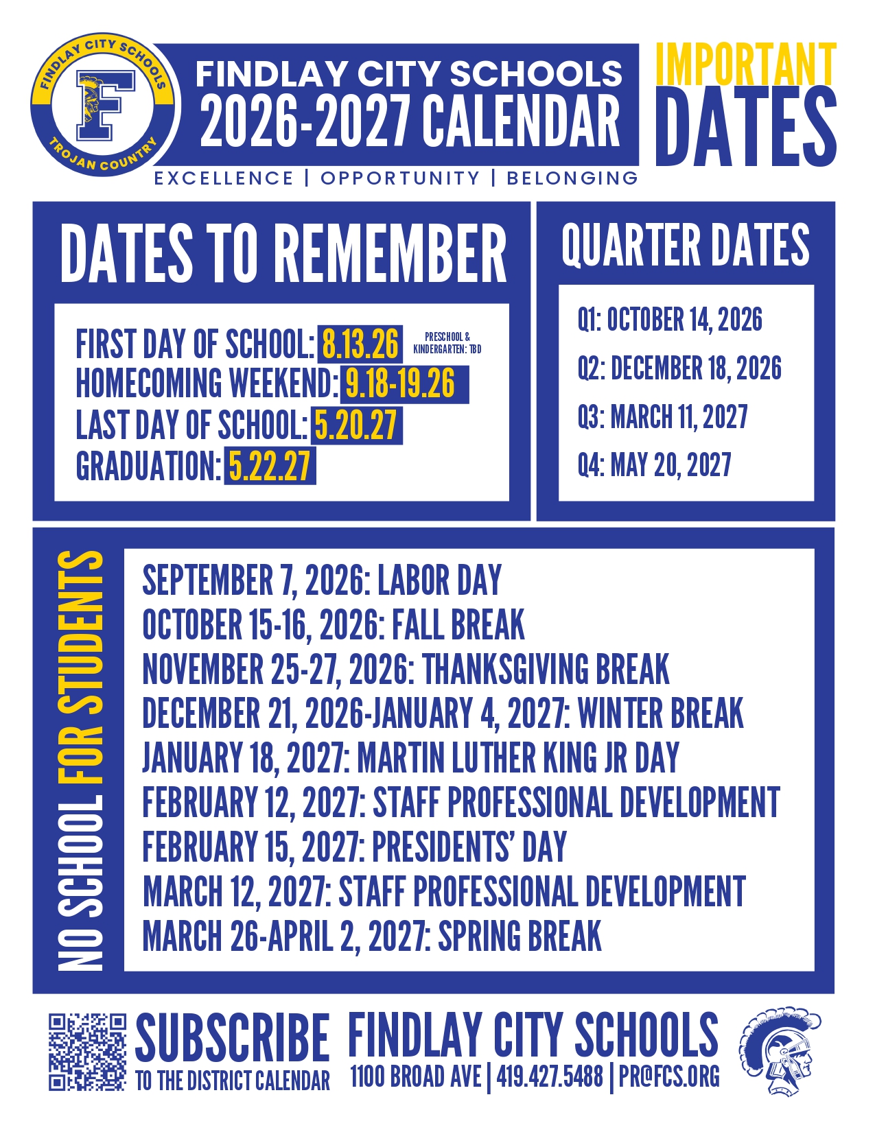 Findlay City Schools Calendar 2026-2027