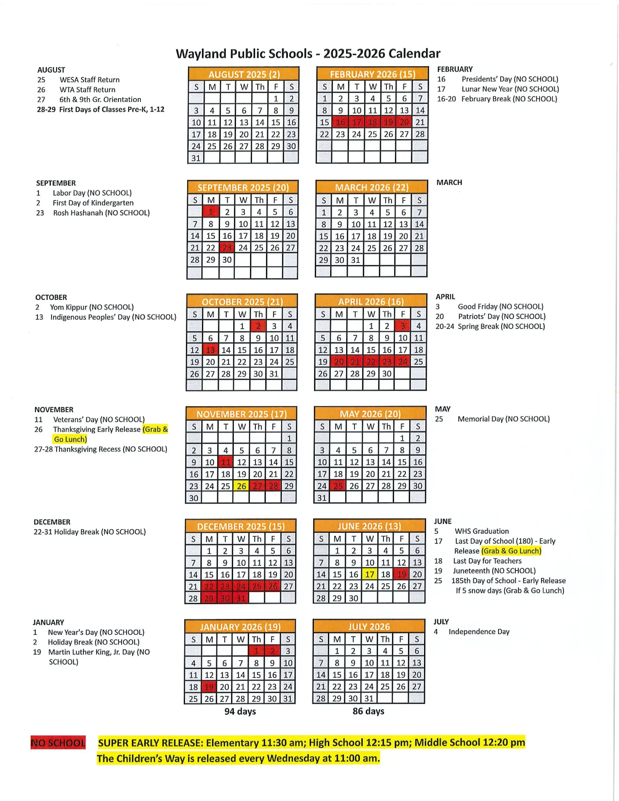Wayland Public Schools Calendar offers a dynamic and collaborative work environment for educators and support staff committed to fostering academic excellence and student growth. Employment opportunities range from teaching and administrative roles to positions in student support services, facilities, and transportation.