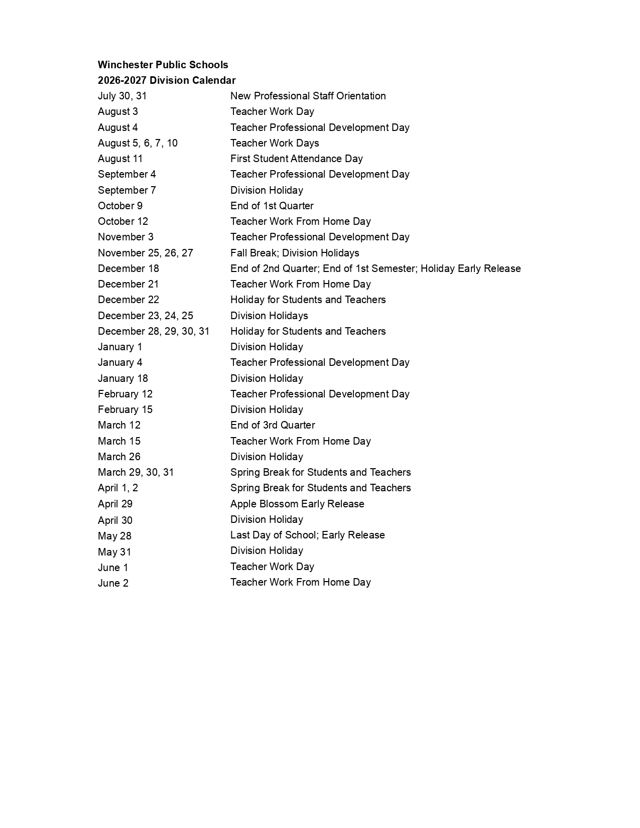 The Winchester Public Schools Calendar is carefully designed to balance instructional time with necessary breaks, ensuring that students and staff have time to rest, celebrate, and reflect throughout the year.